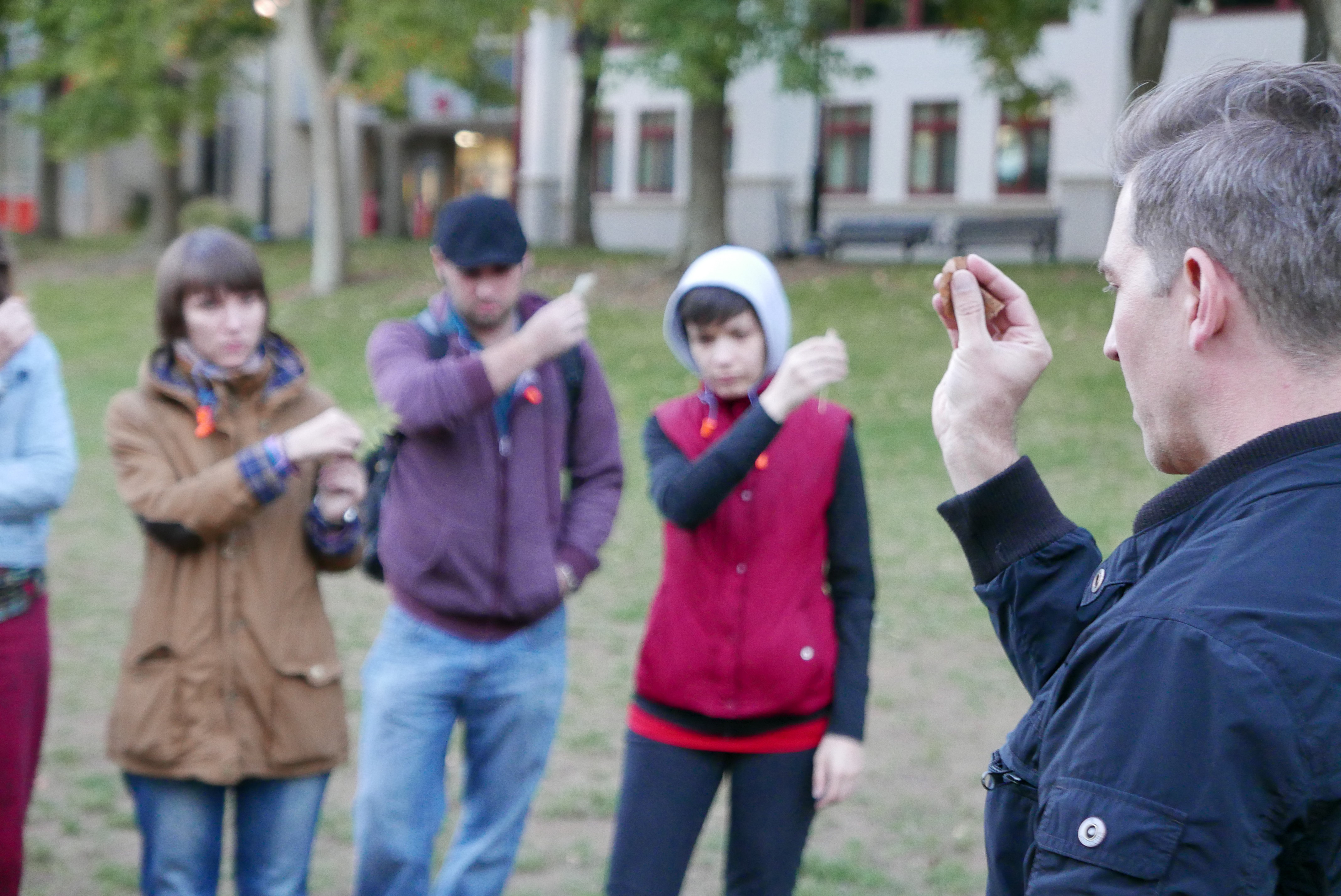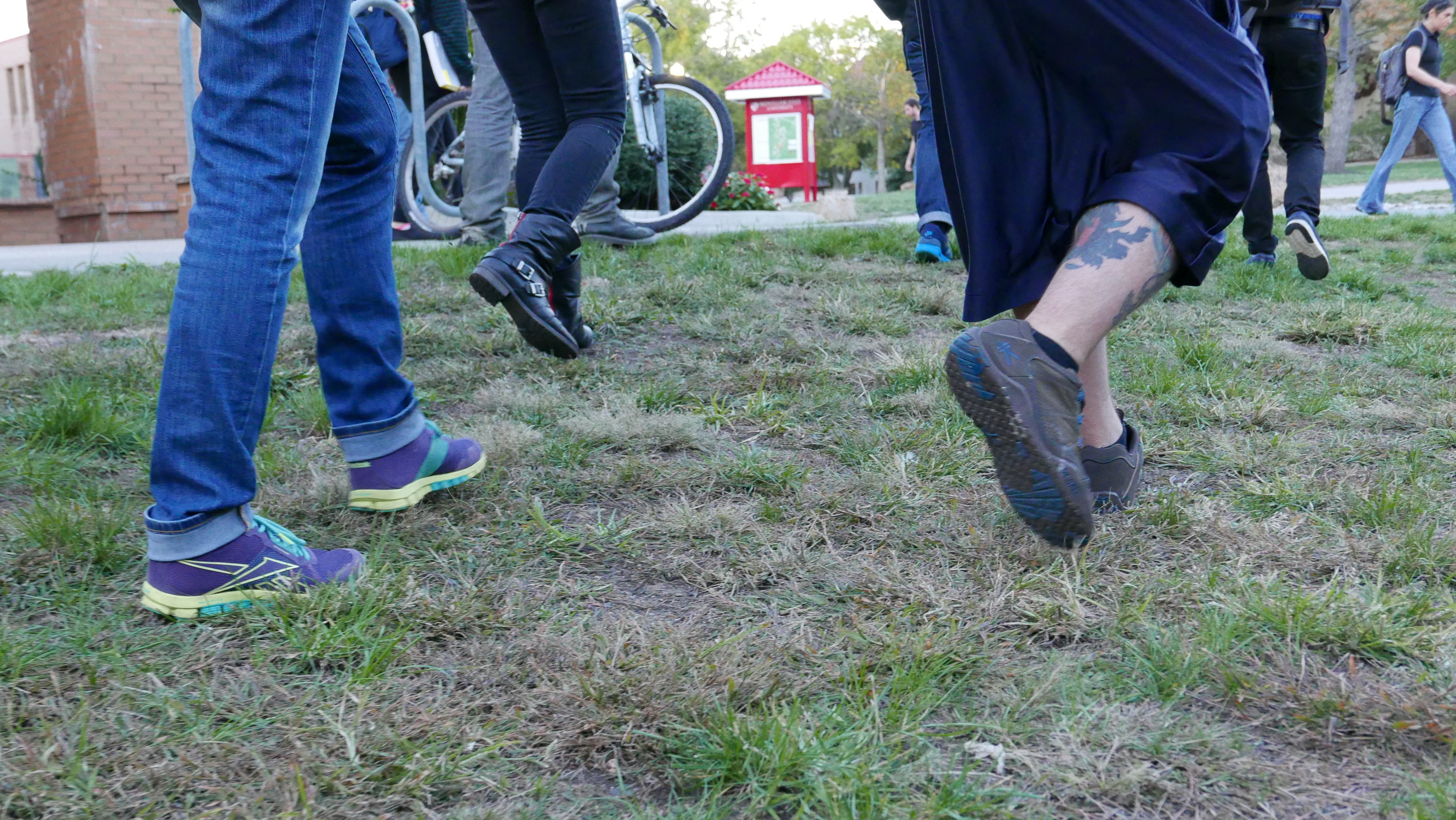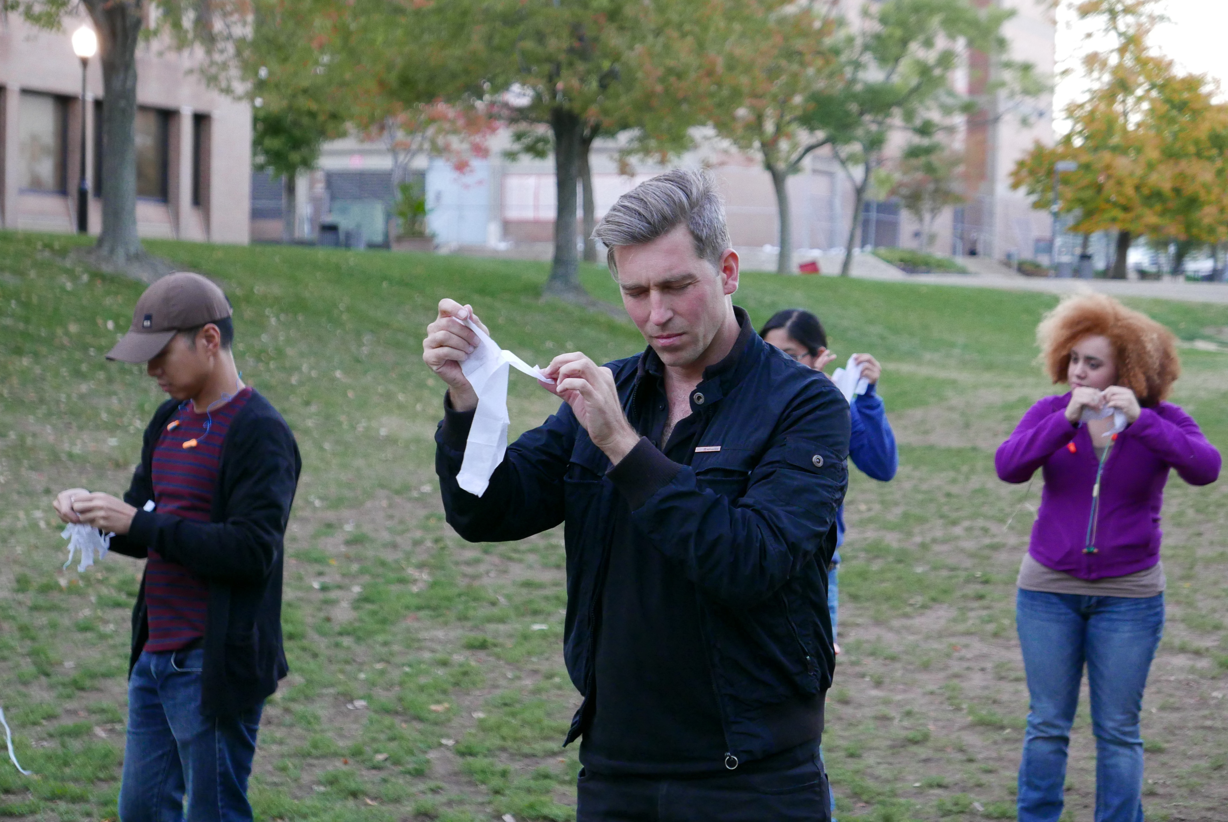 Conceptual artist David Helbich recently guided students on a walk through Montclair State University. In the public space, a series of aural exercises were carried out to position the participant as both performer and audience at the same time.