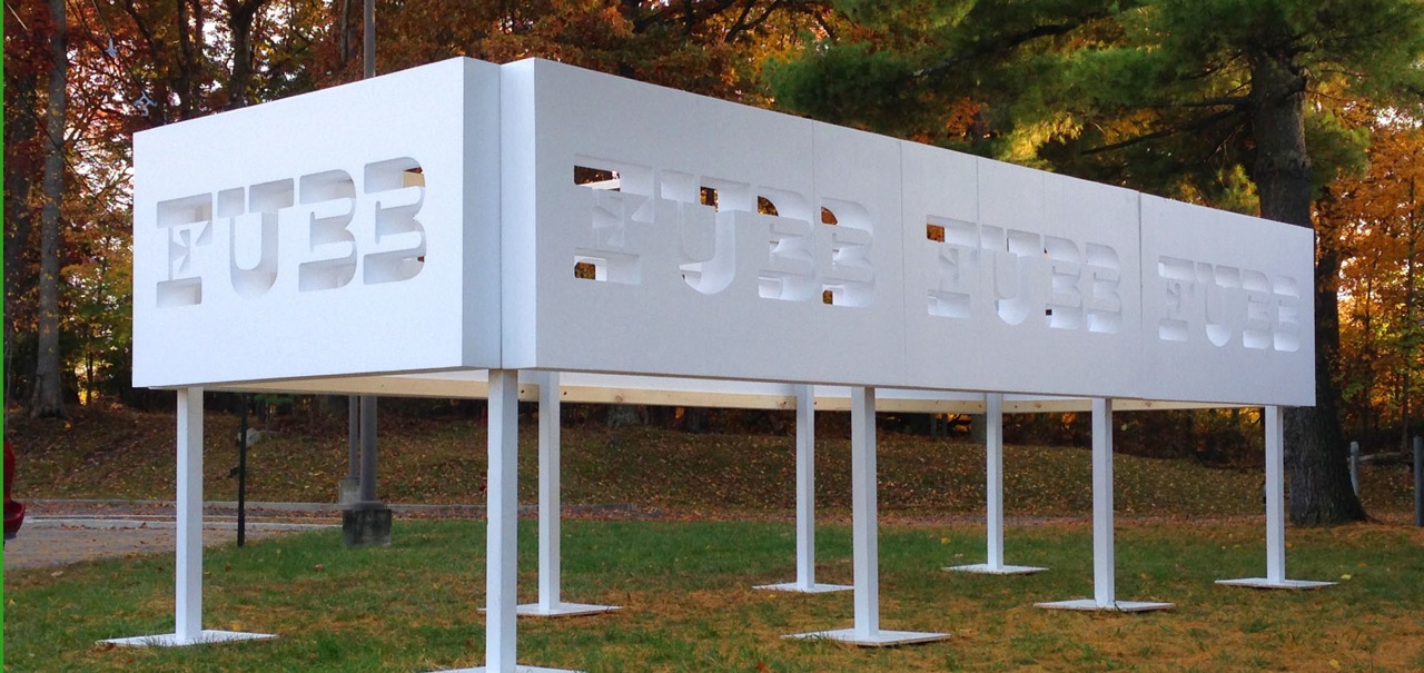 The House of FUBB is an astro-viewing pavilion designed for public enjoyment and celestial observation. The artist has invented a custom typeface perfectly suited to large architectural projects. FUBB, the name that the artist has given to Exoplanet 452b is an earthlike planet discovered in the Milky Way in 1995. It exists 1400 light years away. The language of space and time come together with the House of FUBB.