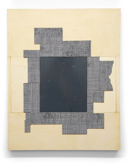 TD: You often cut out or cover certain parts of images or of the canvas. What leads to your decision to take things away and replace them with other images or materials or geometric designs?