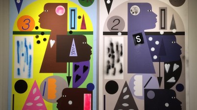 Abney is not afraid of color. There were reds, blues and yellows, and greens, violets and oranges: flat, monochromatic, and neon versions of them!