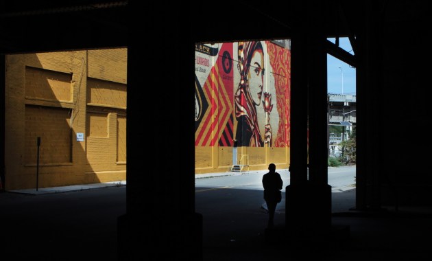 Shepard Fairey in Jersey City By Anton Antonowicz A large brick wall in Jersey City has become the canvas for a mural named ‘Natural Springs.’ Precisely why its artist, Shepard Fairey, decided on that title is […] nooneisanartist September 23, 2015 Leave a Comment